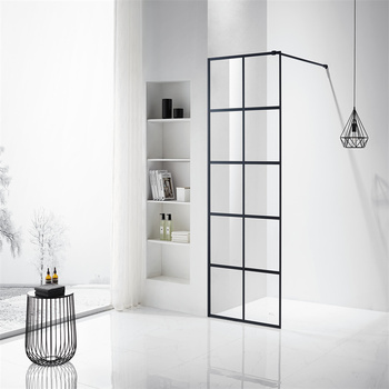 Fixed Shower Glass Black Stripe Stationary Shower Panel with Elegant Holder Walk in Shower Screen Cupc for USA Market